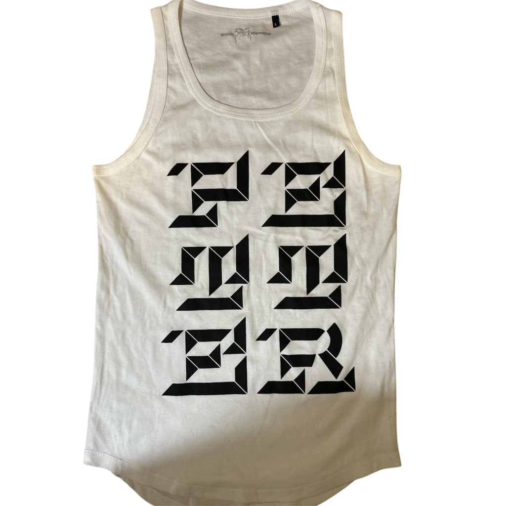 Vitt linne med Petter-tryck på framsidan