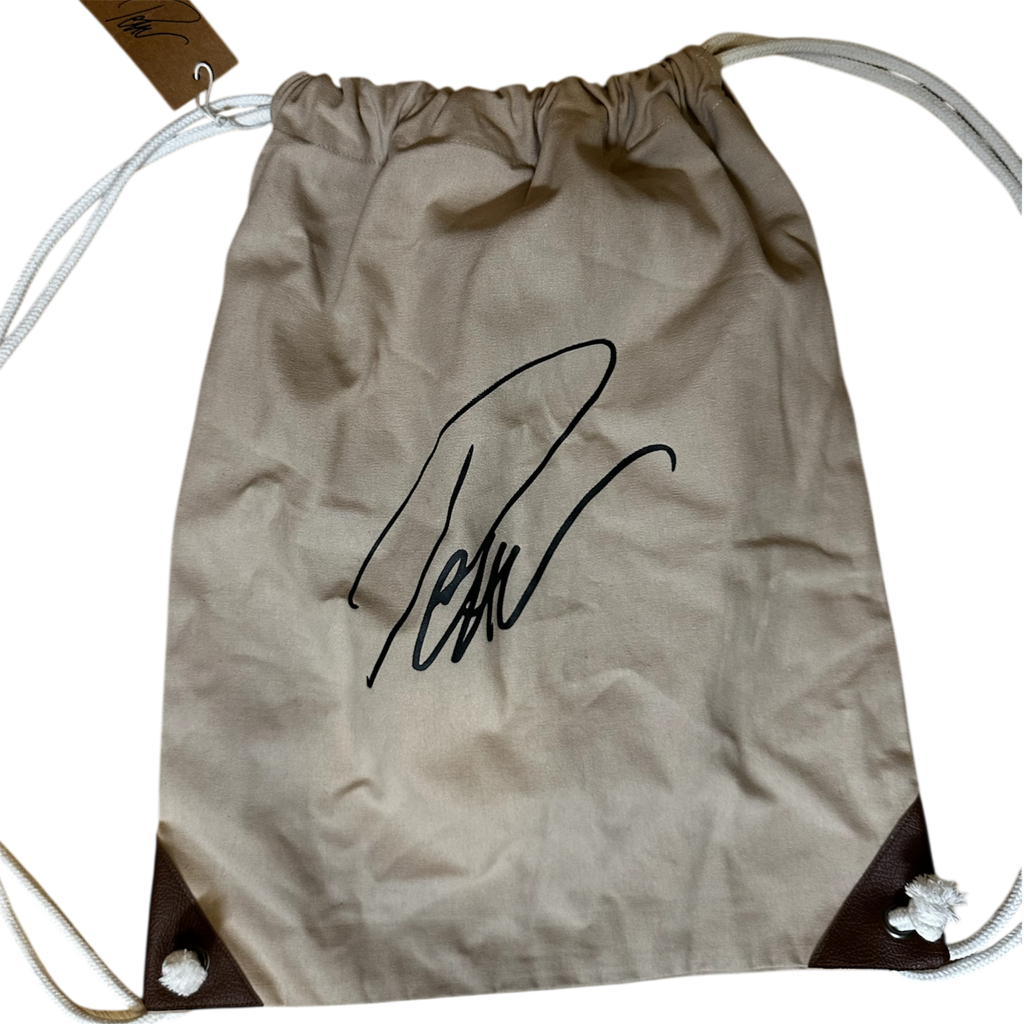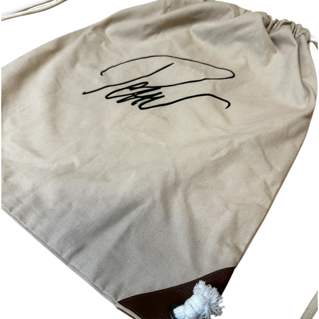 Beige väska i modellen Gym sac, funkar perfekt att ta till gymmet, jobbet eller att frakta vin i.