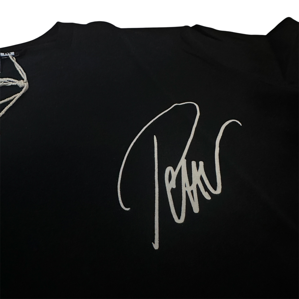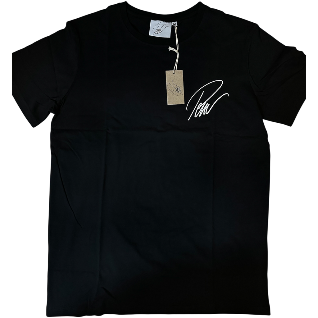 Svart mjuk och tunn t-shirt med Petters signatur på bröstet.
