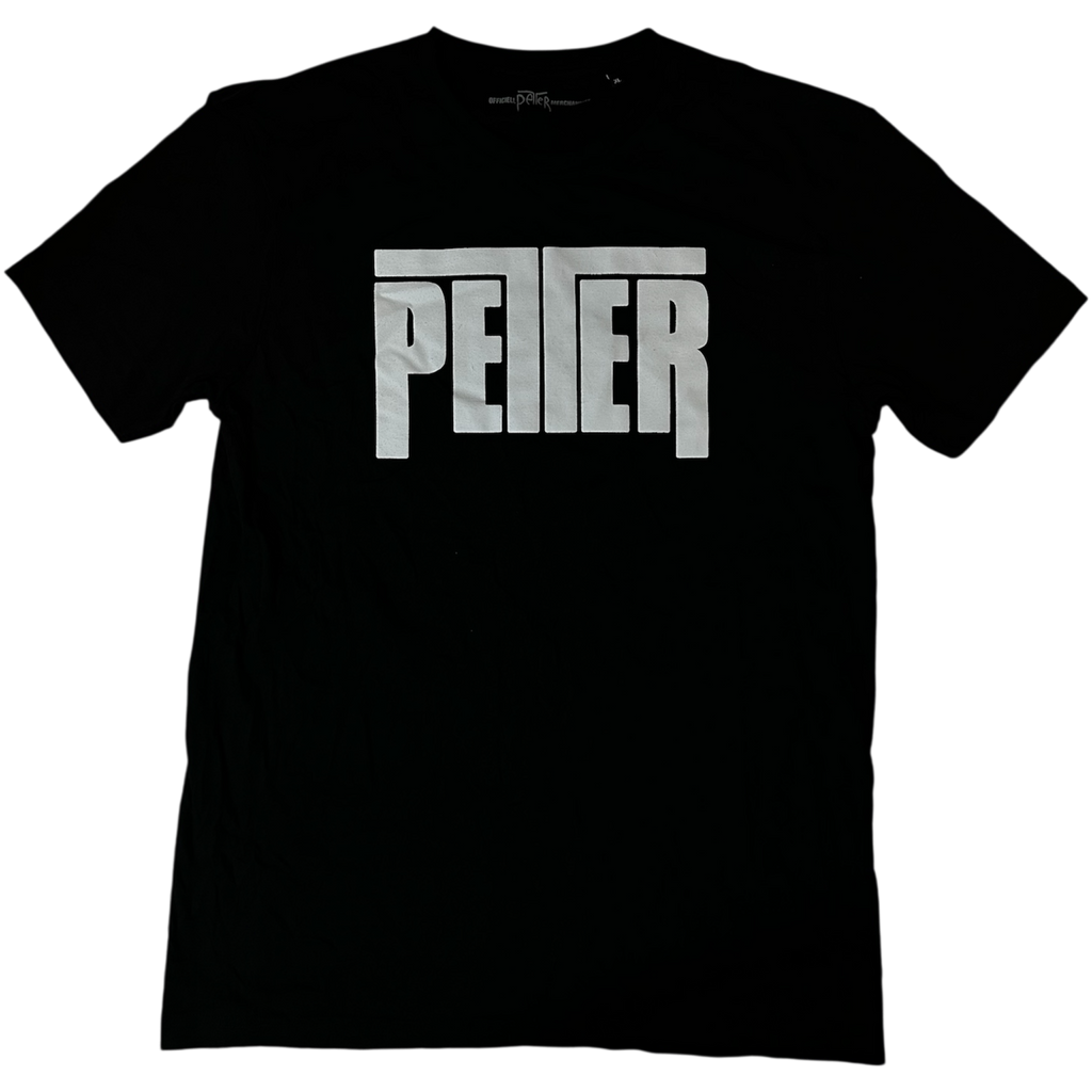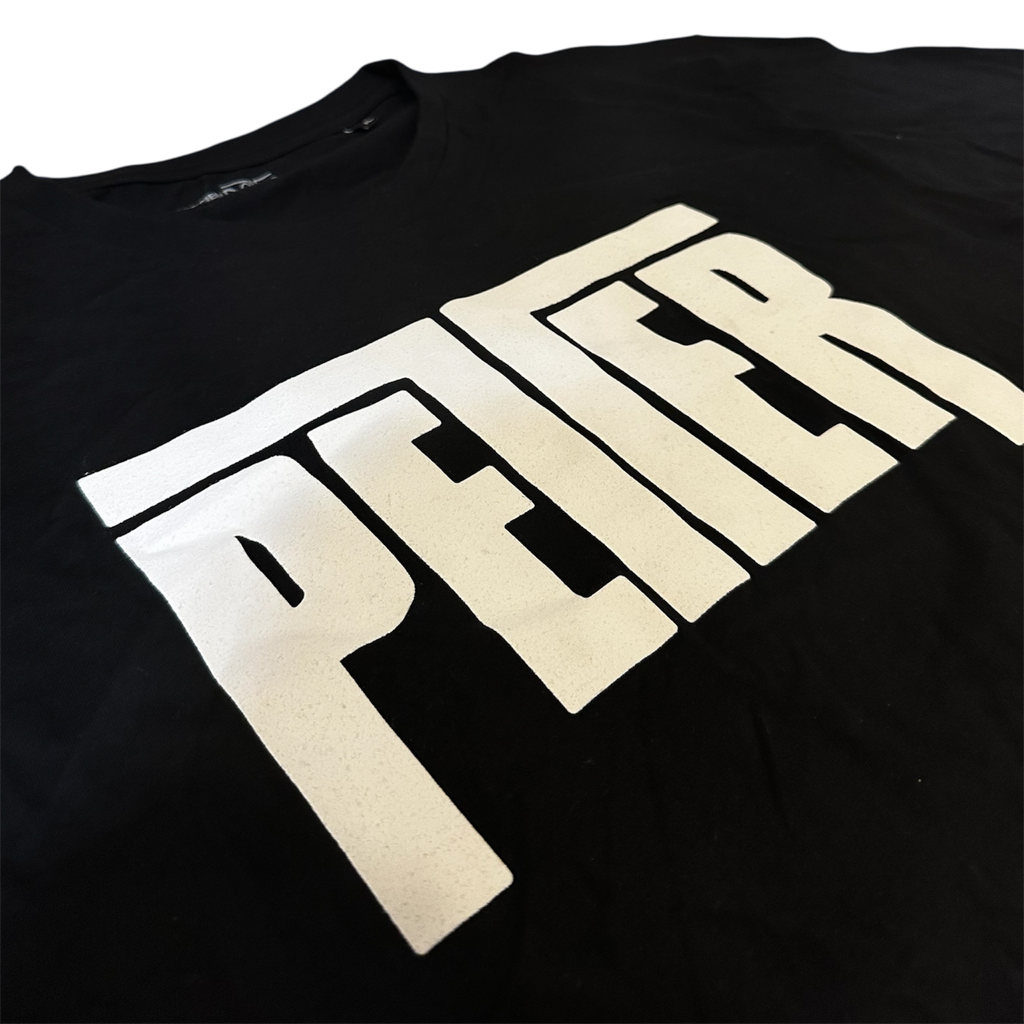 Svart t-shirt i bomull med "PETTER”-tryck i vitt. Unisexmodell.